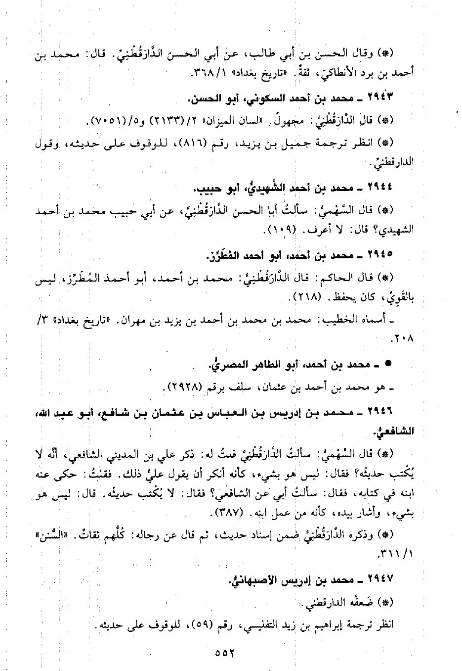 • قال السهمي: سألت أبا الحسن الدَّارَقُطْنِيّ، عن أبي حبيب محمد بن أحمد الشهيدي؟ قال لا أعرف. (109) .