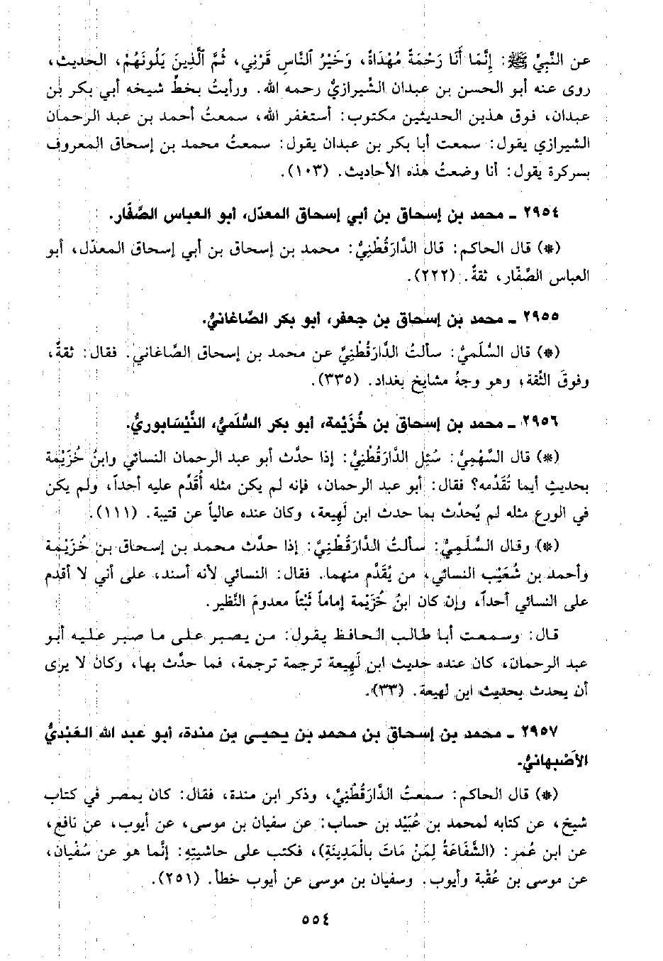 • قال الحاكم: قال الدَّارَقُطْنِيّ: محمد بن إسحاق بن أبي إسحاق المعدل، أبو العباس الصفار، ثقة. (222) .