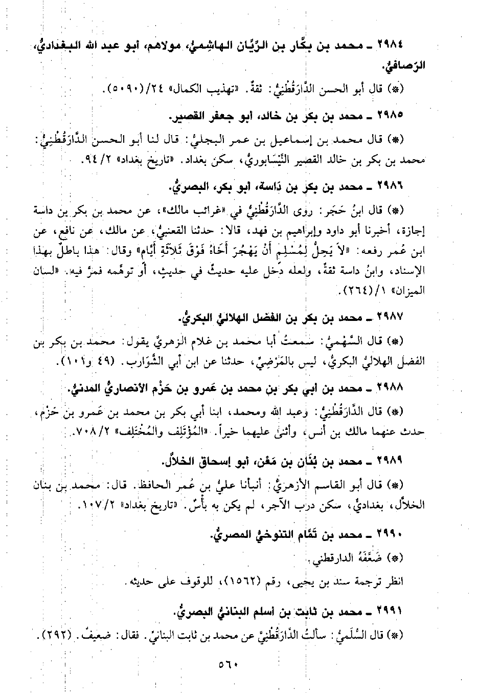 2984 - محمد بن بكار بن الريان الهاشمي، مولاهم، أبو عبد الله البغدادي، الرصافي.