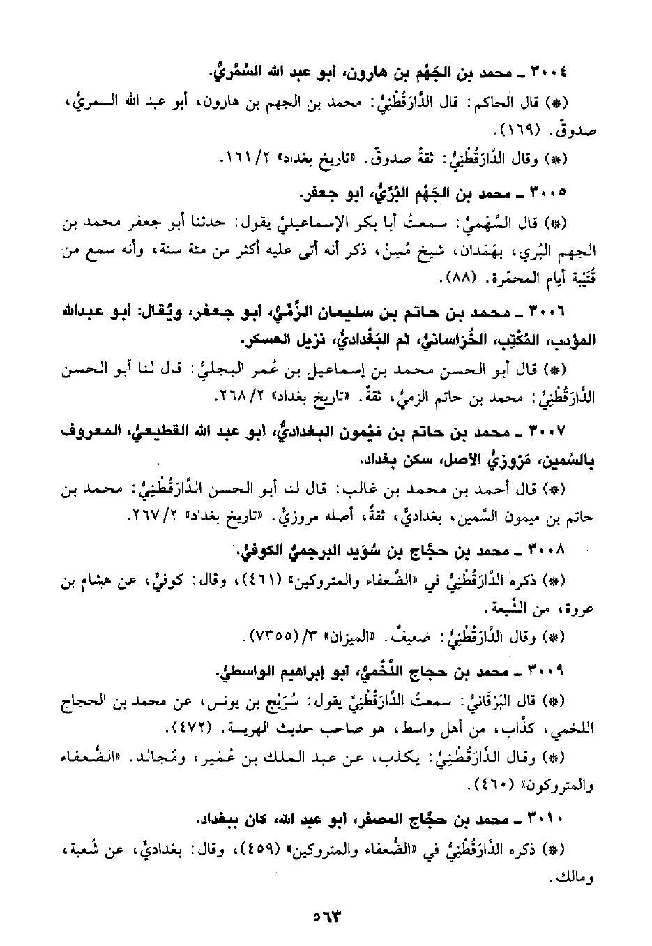 • قال الحاكم: قال الدَّارَقُطْنِيّ: محمد بن الجهم بن هارون، أبو عبد الله السمري، صدوق. (169) .
