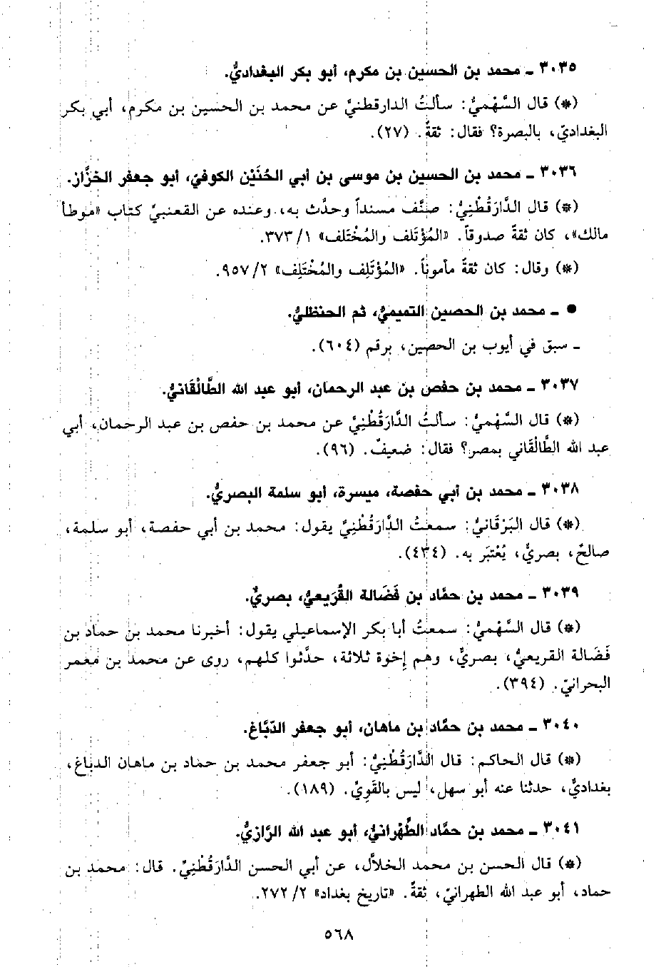 • قال السهمي: سألت الدَّارَقُطْنِيّ عن محمد بن الحسين بن مكرم، أبي بكر البغدادي، بالبصرة؟ فقال: ثقة. (27) .