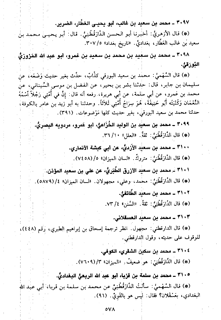 • قال الأزهري: أخبرنا أبو الحسن الدَّارَقُطْنِيّ، قال أبو يحيى محمد بن سعيد بن غالب العطار، بغدادي. «تاريخ بغداد» 5 307.