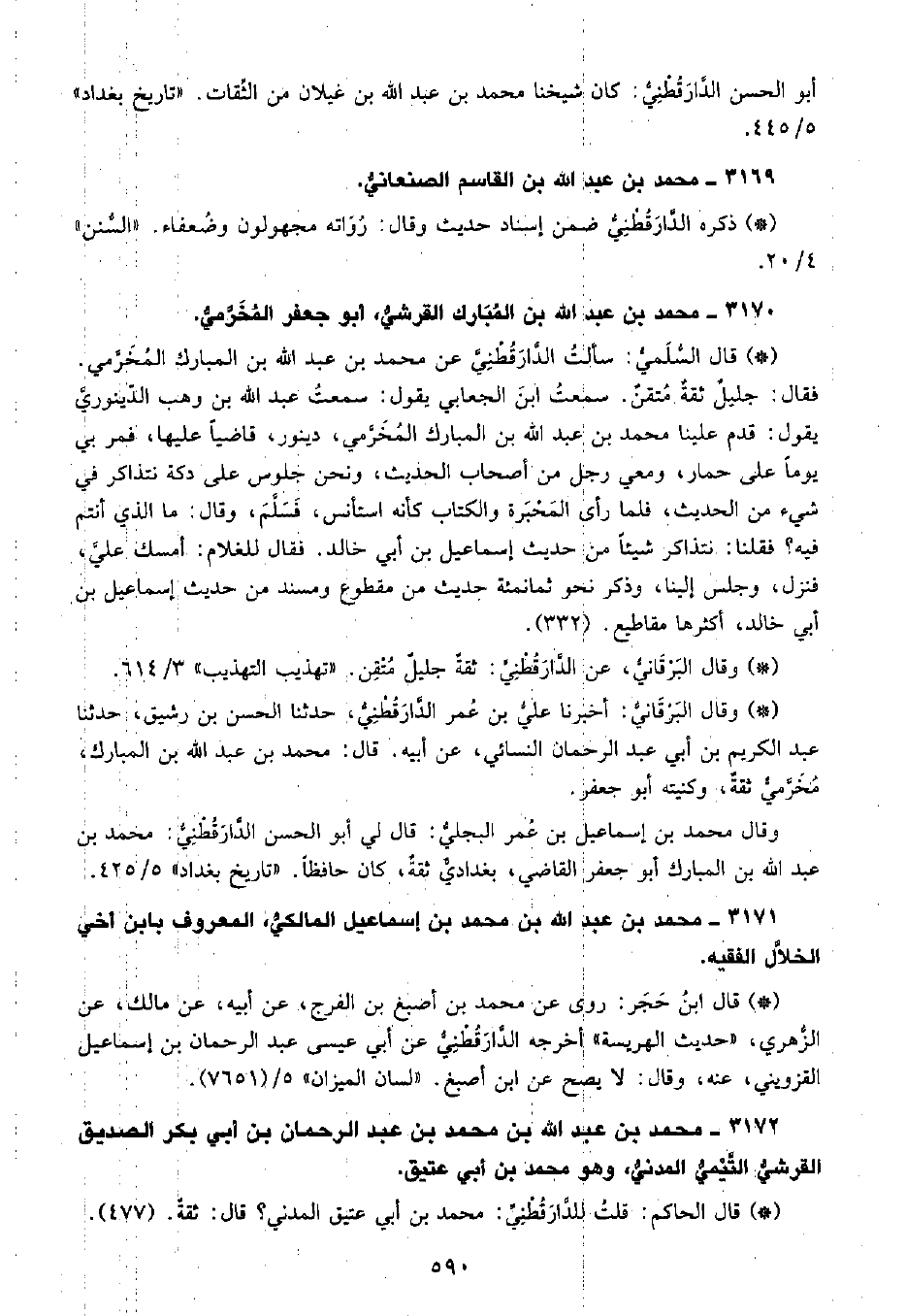 أبو الحسن الدَّارَقُطْنِيّ كان شيخنا محمد بن عبد الله بن غيلان من الثقات. «تاريخ بغداد» 5 445.