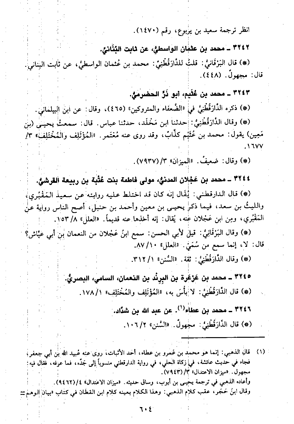 • قال البَرْقانِيّ: قلتُ للدَّارَقُطْنِيِّ محمد بن عثمان الواسطي، عن ثابت البناني، قال مجهول. (448) .
