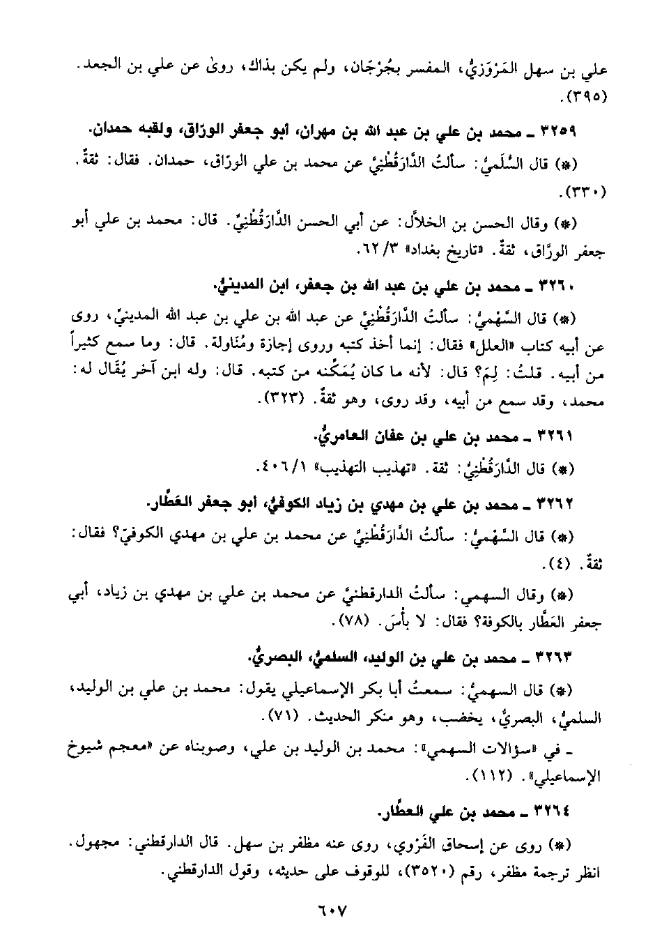 • وقال السهمي: سألت الدَّارَقُطْنِيّ عن محمد بن علي بن مهدي بن زياد، أبي جعفر العطار بالكوفة؟ فقال: لا بأس به. (78) .