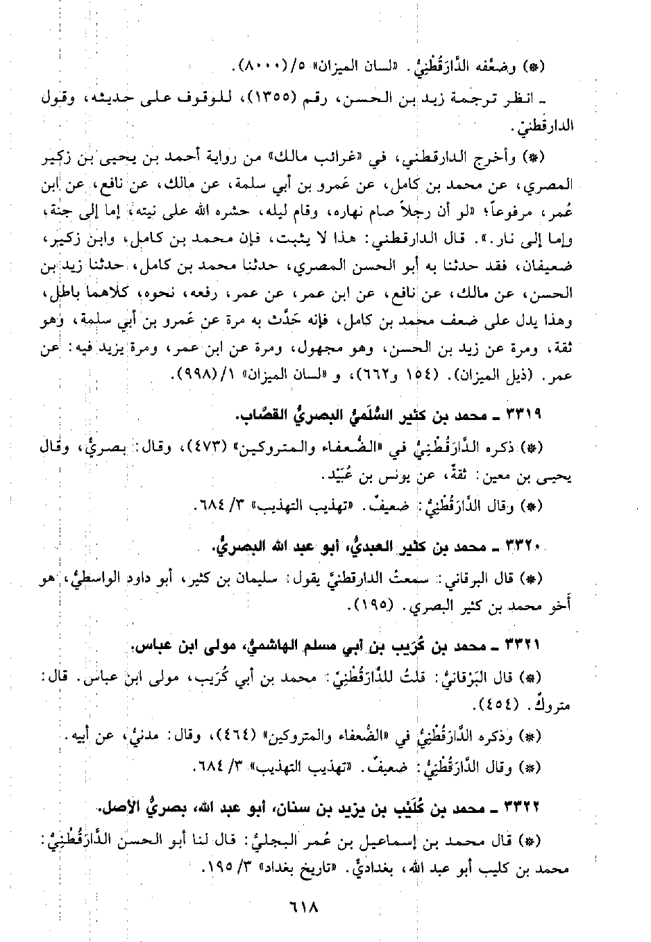 • وضعفه الدَّارَقُطْنِيّ. «لسان الميزان» 5 (8000) .