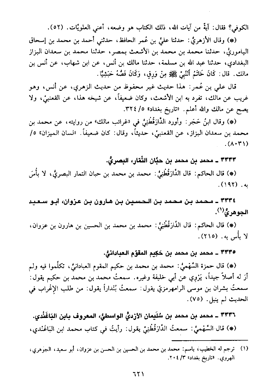 • قال السهمي: سَمِعْتُ الدَّارَقُطْنِيّ يقول رأيت في كتاب محمد ابن الباغندي،