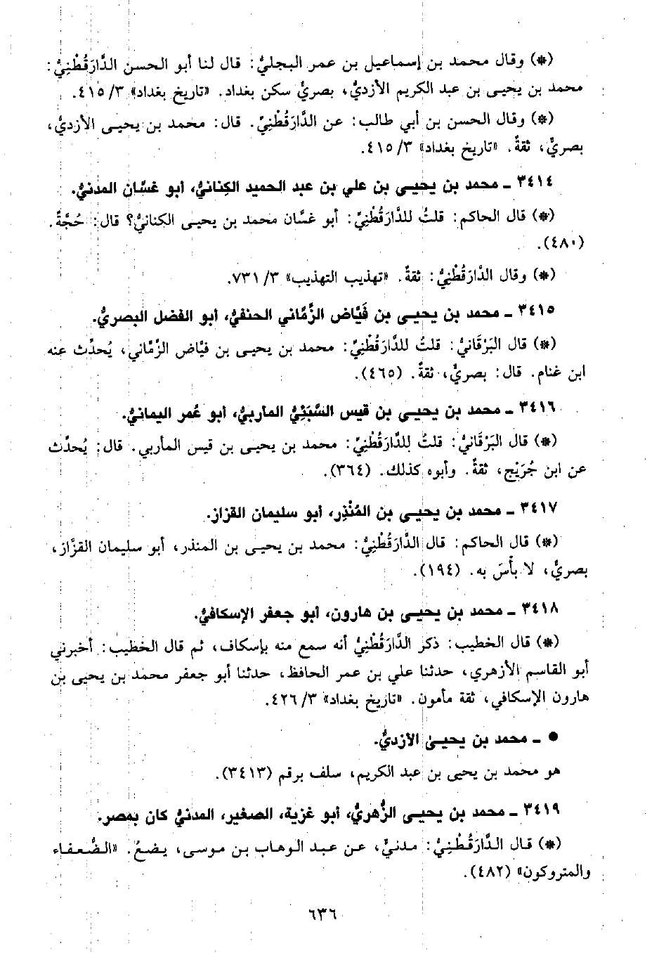 • وقال الحسن بن أبي طالب عن الدَّارَقُطْنِيّ، قال محمد بن يحيى الأزدي، بصري، ثقه. «تاريخ بغداد» 3 415.