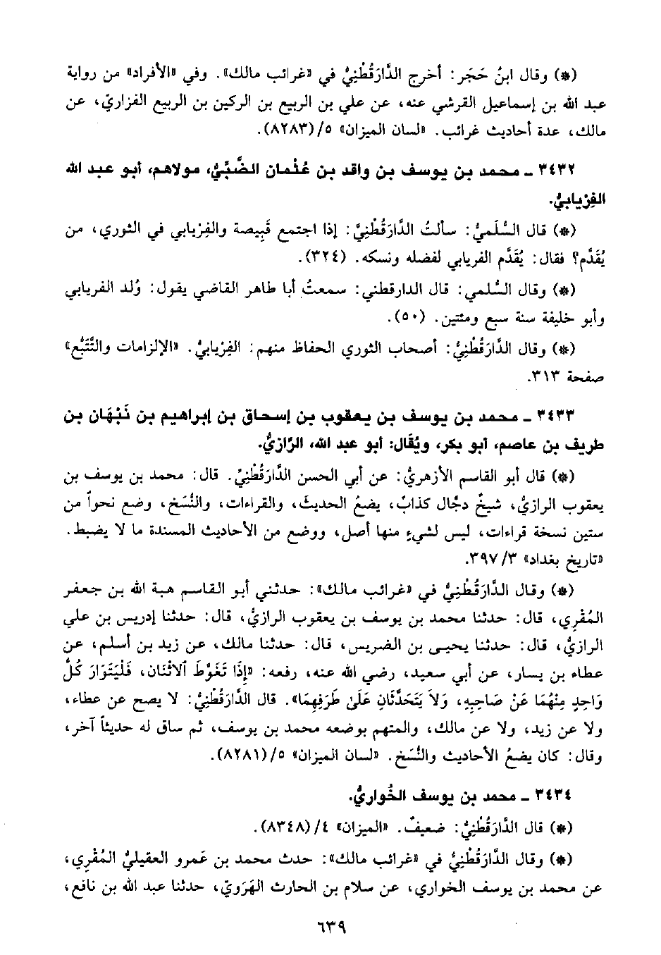 3432 - محمد بن يوسف بن واقد بن عثمان الضبي، مولاهم، أبو عبد الله الفريابي.