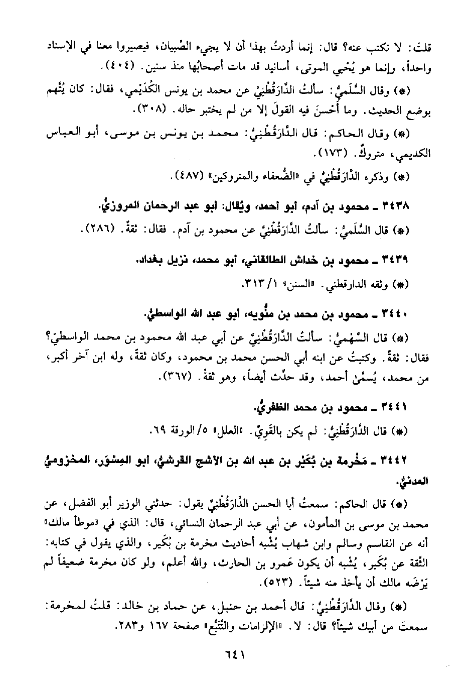 • قال السُّلَمِيُّ: سألت الدَّارَقُطْنِيّ عن محمود بن آدم، فقال: ثقة. (286) .