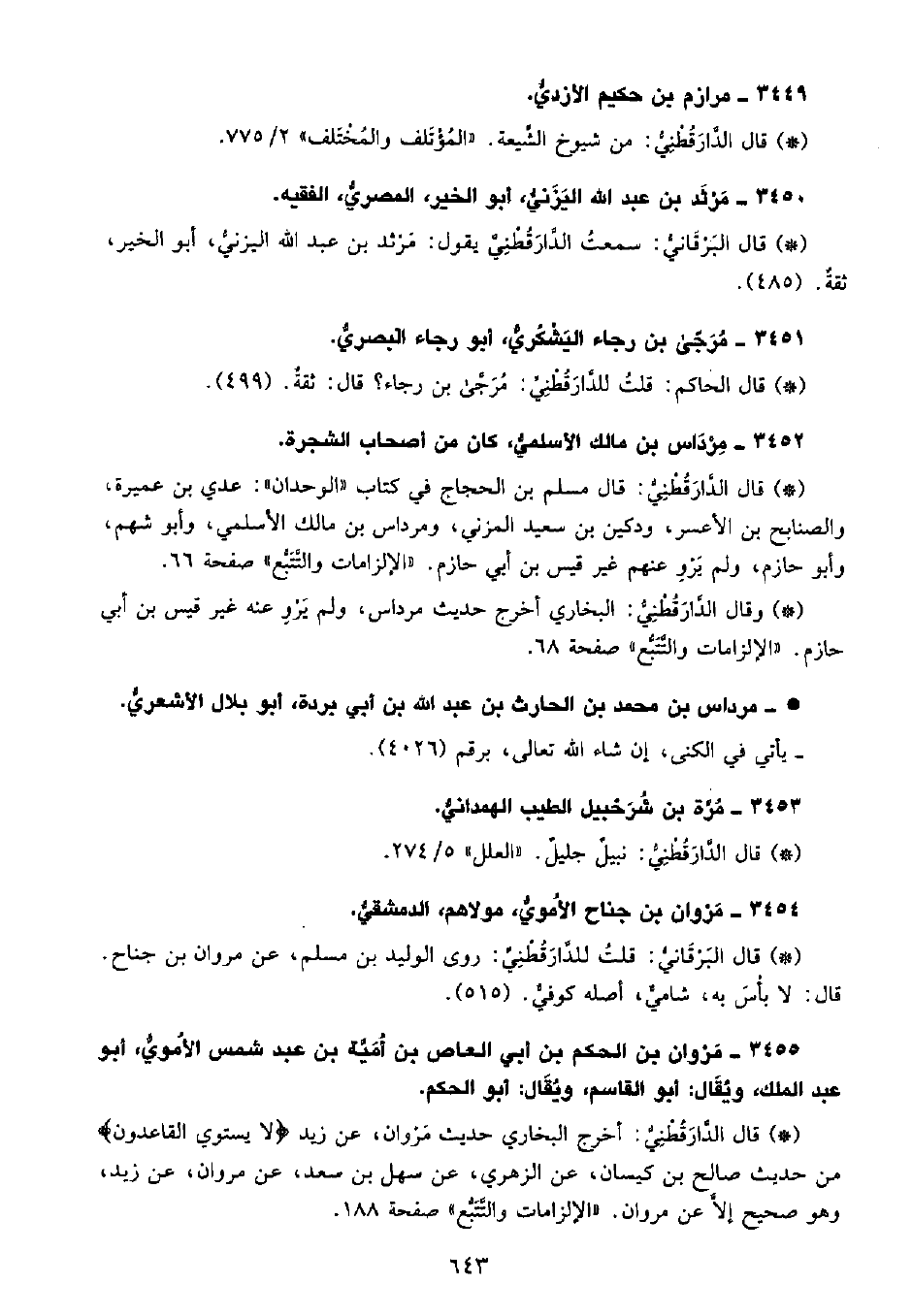 • قال البَرْقانِيّ: سَمِعْتُ الدَّارَقُطْنِيّ يقول مرثد بن عبد الله اليزني، أبو الخير، ثقة. (485) .