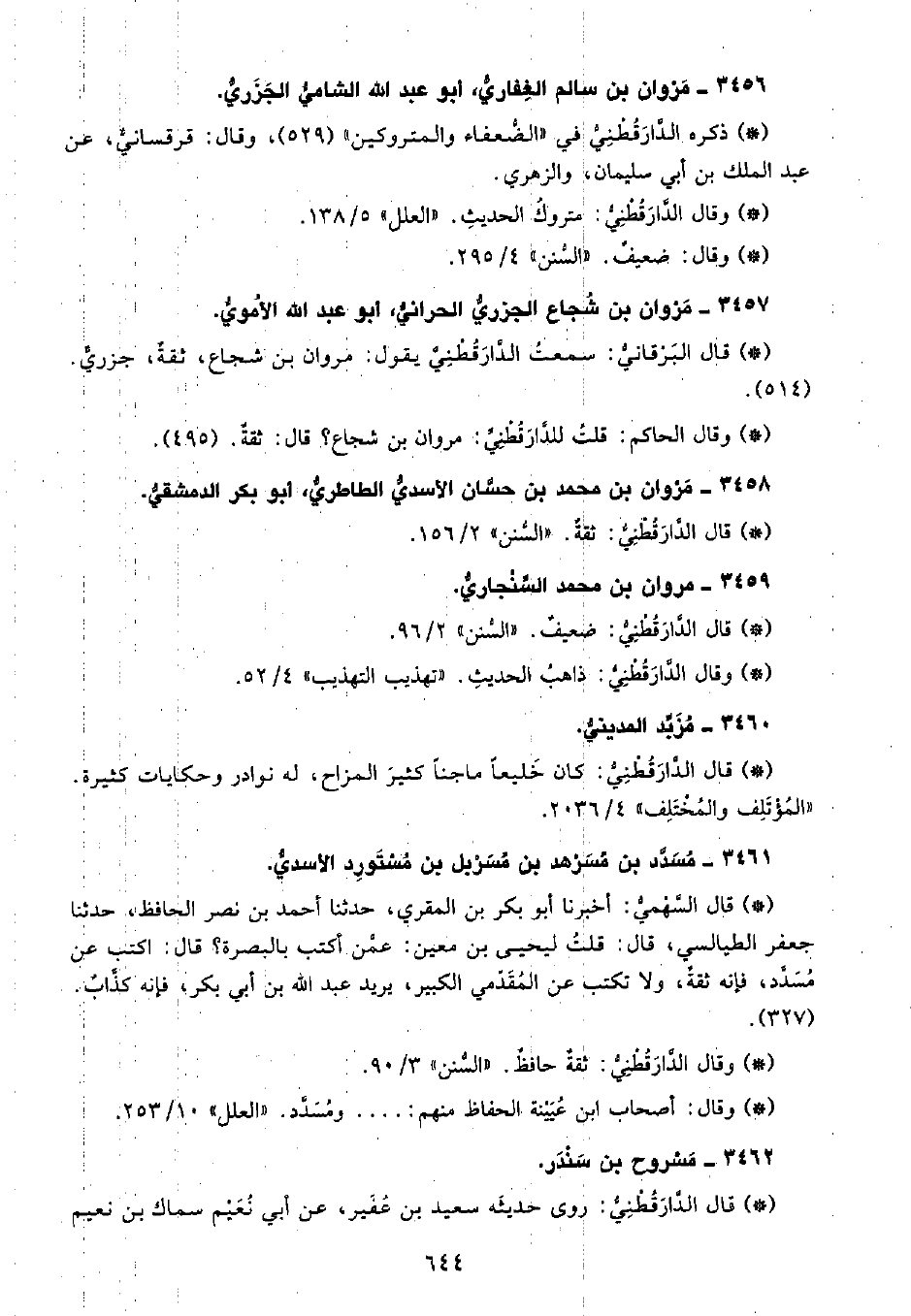 • قال البَرْقانِيّ: سَمِعْتُ الدَّارَقُطْنِيّ يقول مروان بن شجاع، ثقة، جزري. (514)