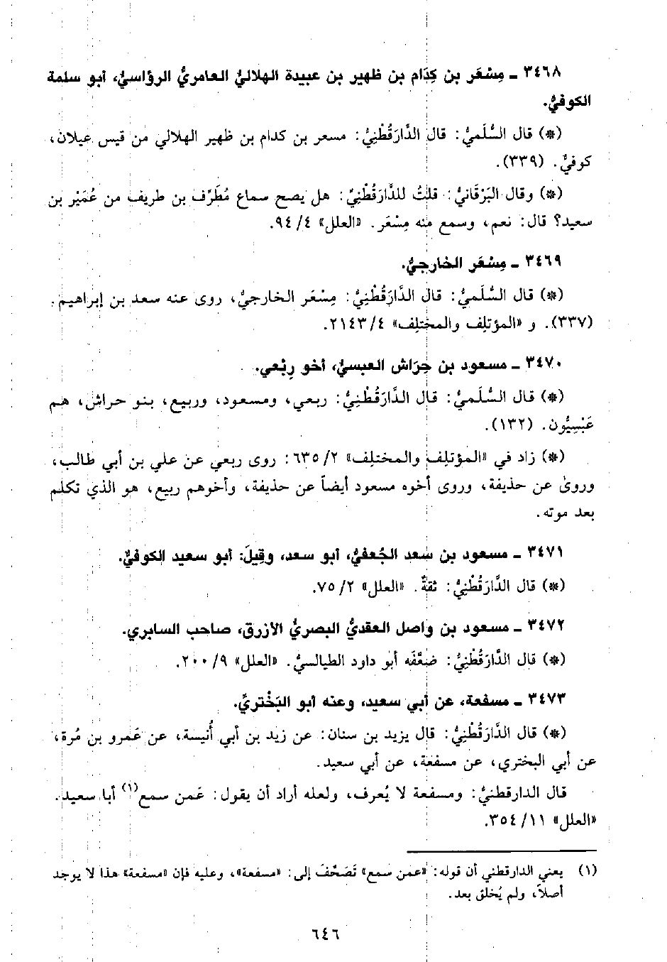 • قال السُّلَمِيُّ: قال الدَّارَقُطْنِيّ: مسعر الخارجي، روى عنه سعد بن ابراهيم. (337) ، و «المؤتلف والمختلف» 4 2143.