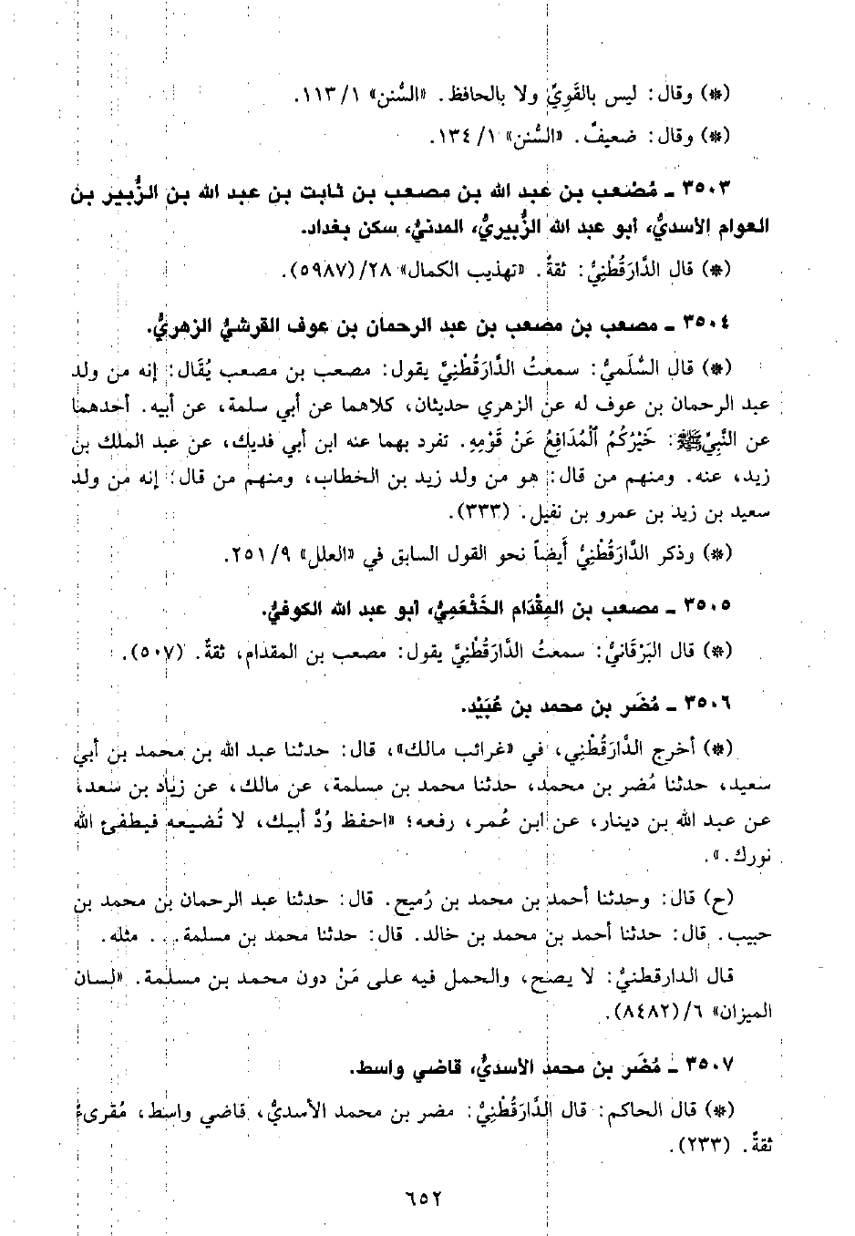 • قال البَرْقانِيّ: سَمِعْتُ الدَّارَقُطْنِيّ يقول مصعب بن المقدام، ثقة. (507) .