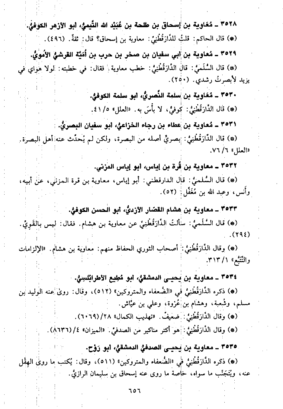 • وقال الدَّارَقُطْنِيّ: أصحاب الثوري الحفاظ منهم معاوية بن هشام. «الإلزامات والتتبع» 1 313.