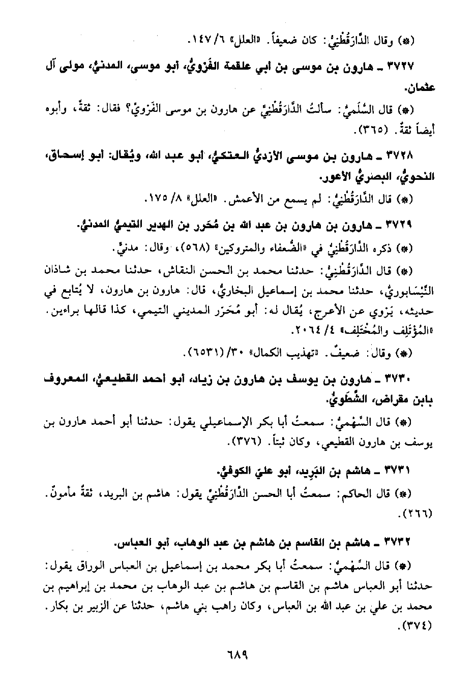 • قال السهمي: سَمِعْتُ أبا بكر الإسماعيلي يقول حدثنا أبو أحمد هارون بن يوسف بن هارون القطيعي، وكان ثبتًا. (376) .