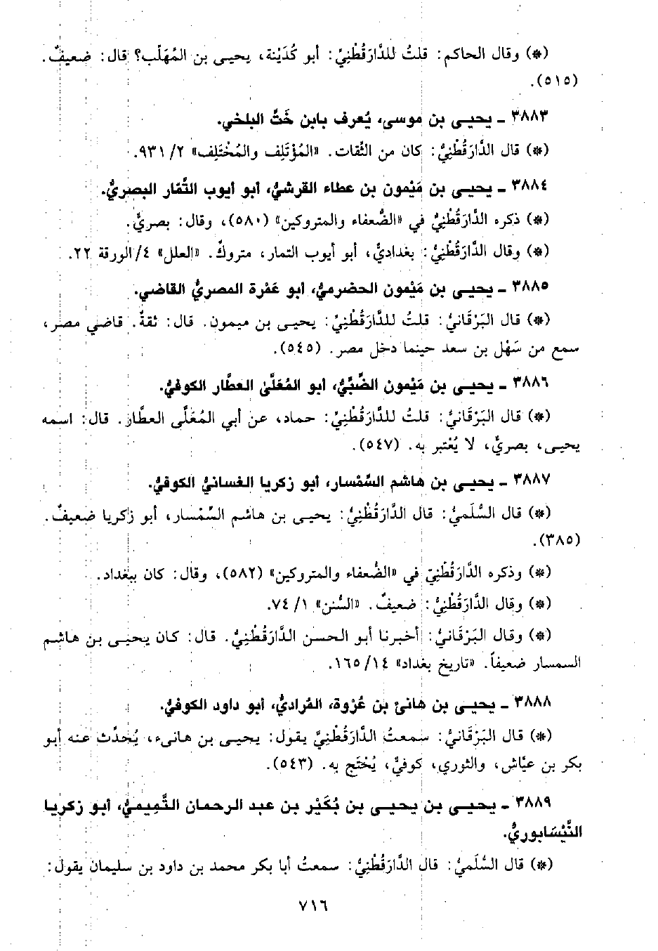 • قال السُّلَمِيُّ: قال الدَّارَقُطْنِيّ: يحيى بن هاشم السمسار، أبو زكريا ضعيف. (385) .