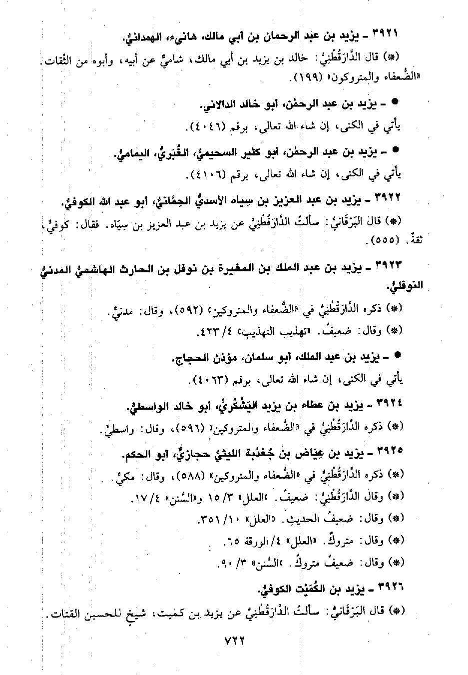 3921 - يزيد بن عبد الرحمن بن أبي مالك، هانىء الهمداني.