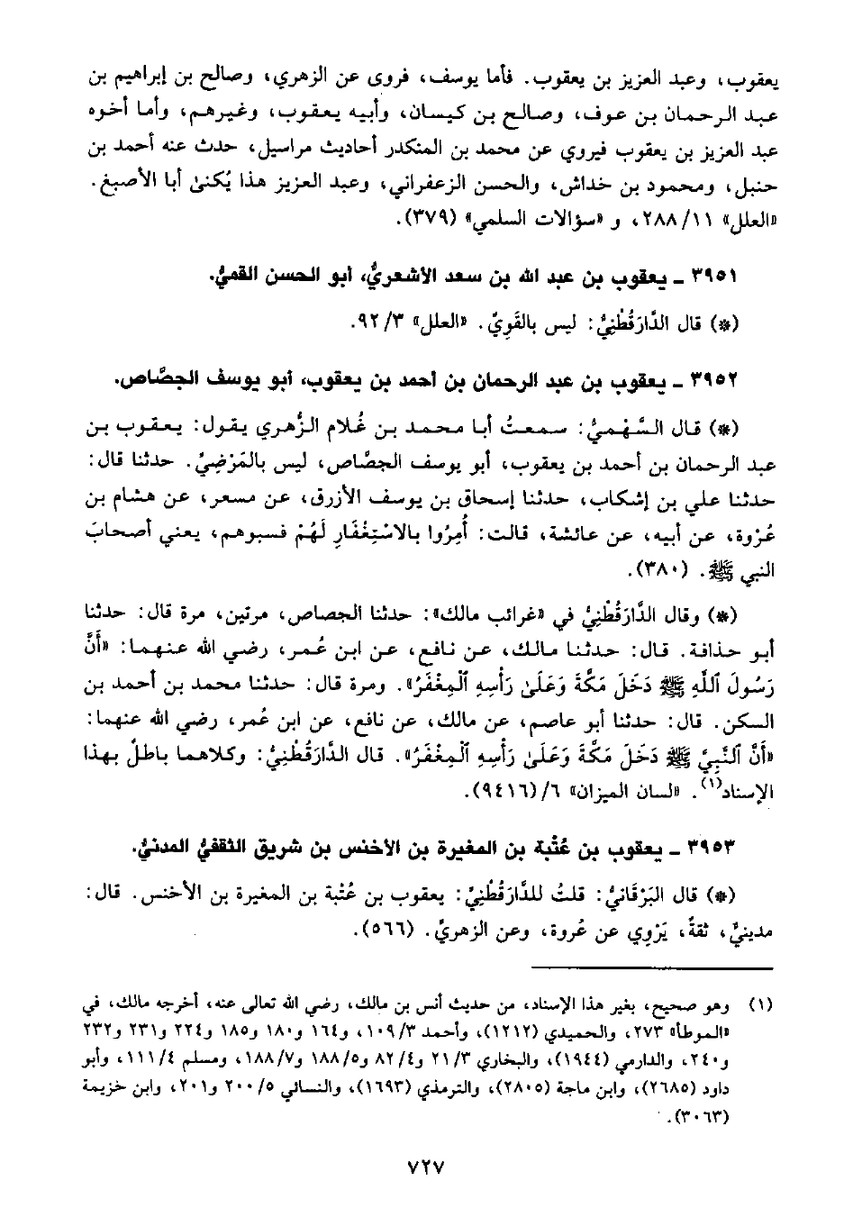 • قال البَرْقانِيّ: قلتُ للدَّارَقُطْنِيِّ يعقوب بن عتبة بن المغيرة بن الأخنس، قال مديني، ثقة، يروي عن عروة، وعن الزهري. (566) .