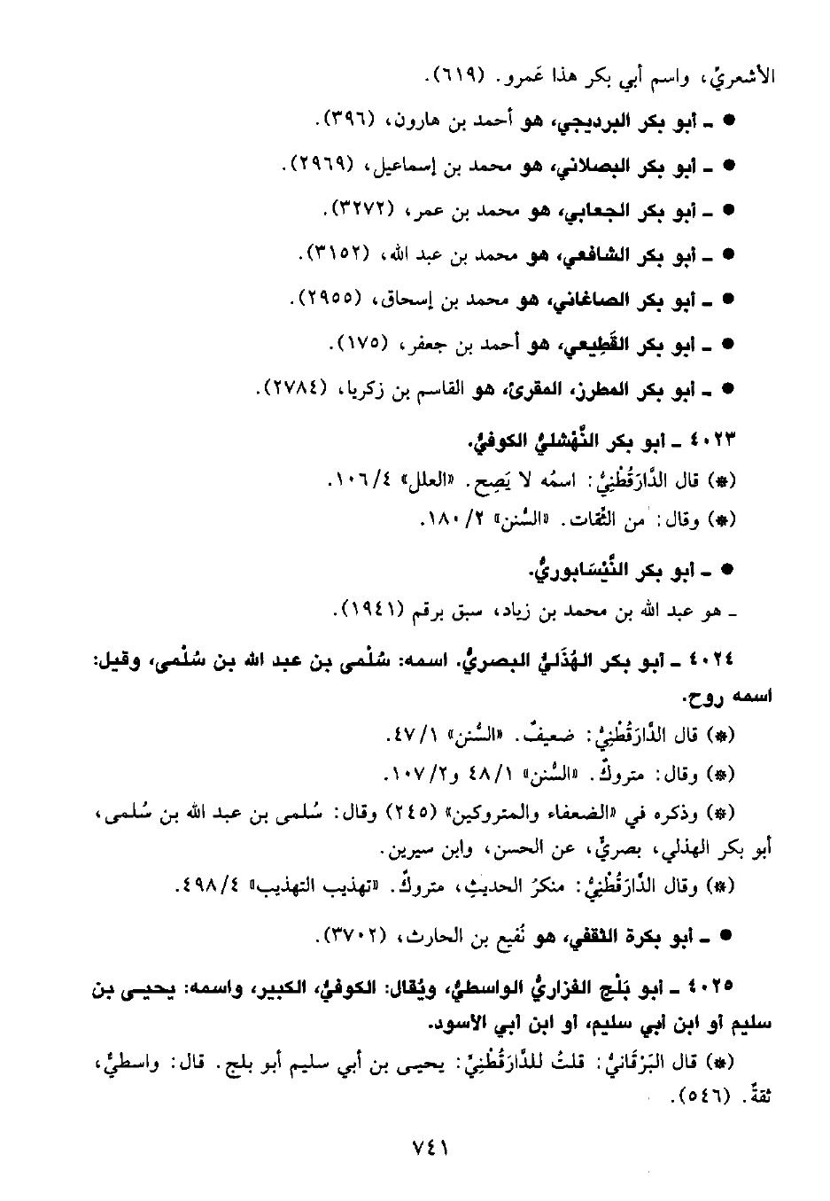 4024 - أبو بكر الهذلي، البَصْرِيّ، اسمه سلمى بن عبد الله بن سلمى، وقيل اسمه روح.