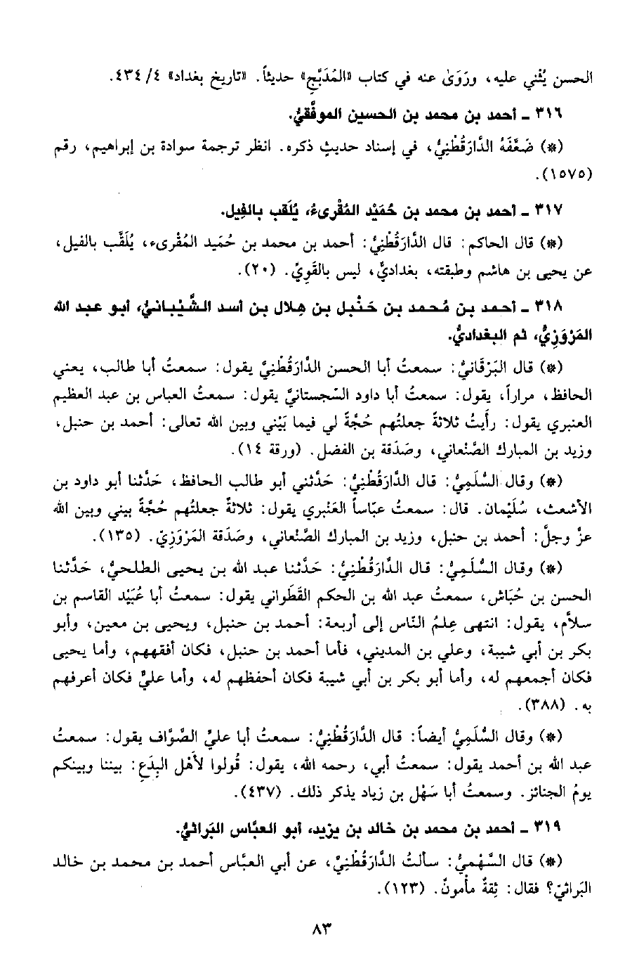 318 - أحمد بن محمد بن حنبل بن هلال بن أسد الشيباني، أبو عبد الله المروزي، ثم البغدادي.