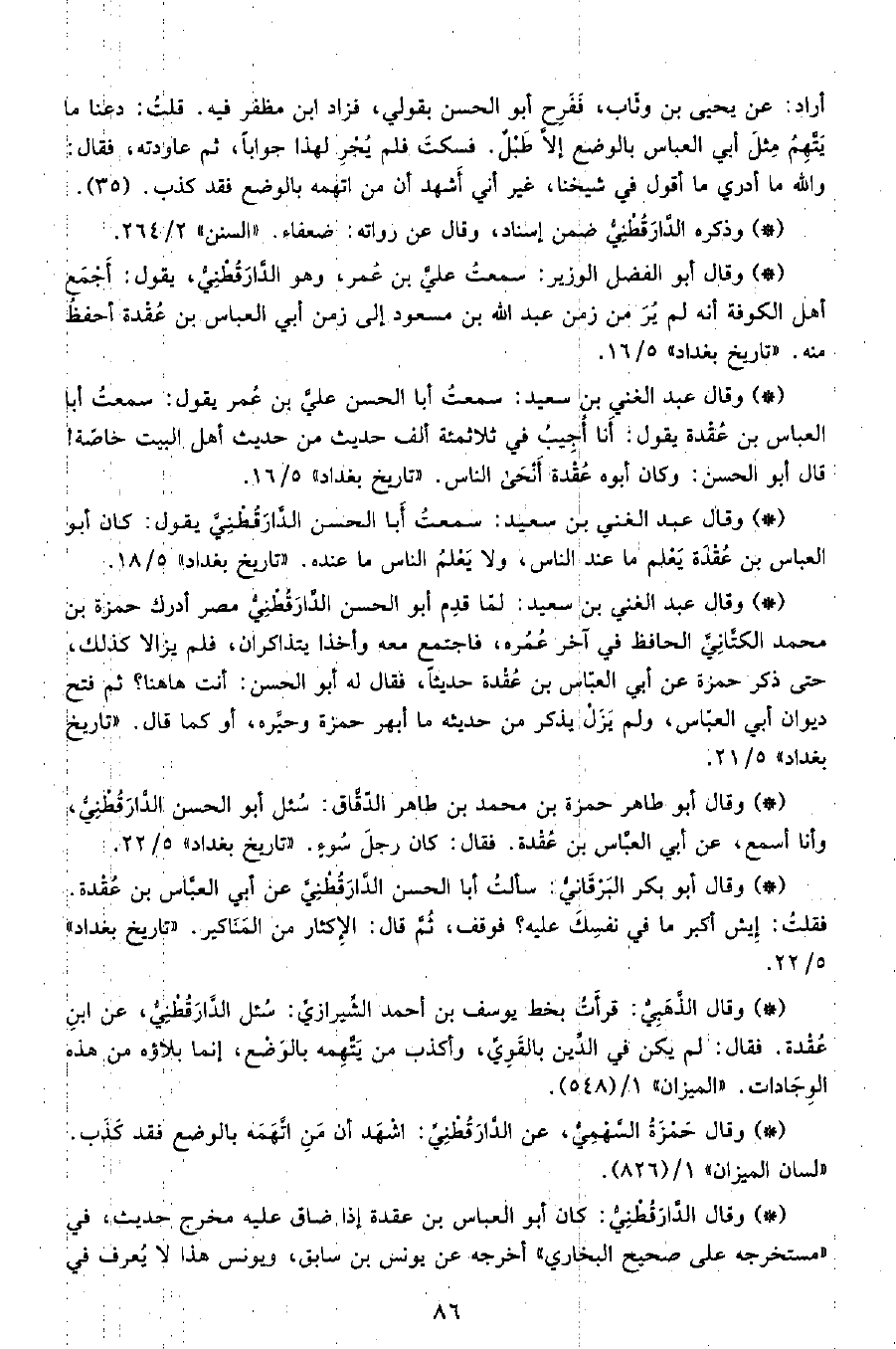• وقال أبو طاهر حمزة بن محمد بن طاهر الدقاق سئل أبو الحسن الدَّارَقُطْنِيّ، وأنا أسمع، عن أبي العباس بن عقدة، فقال: كان رجل سوء. «تاريخ بغداد» 5 22.