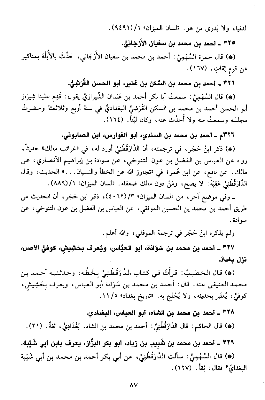 • قال حمزة السهمي أحمد بن محمد بن سفيان الأرجاني، حدث بالأبلة بمناكير عن قوم ثقات. (167) .