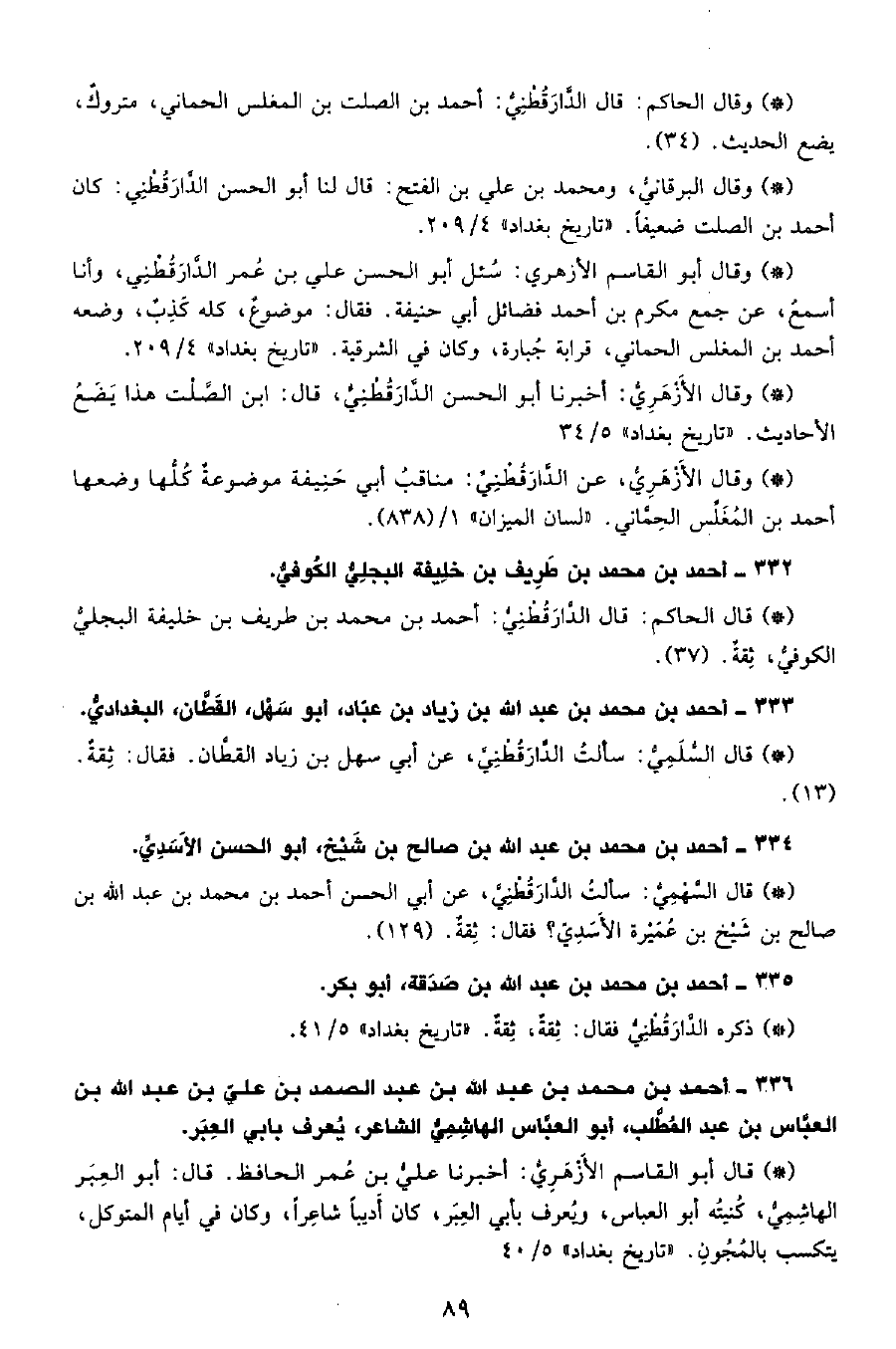 • وقال الحاكم: قال الدَّارَقُطْنِيّ: أحمد بن الصلت بن المغلس الحماني، متروك، يضع الحديث. (34) .