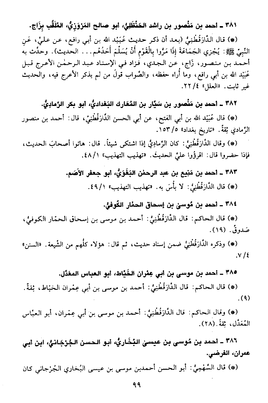 • قال الحاكم: قال الدَّارَقُطْنِيّ: أحمد بن موسى بن إسحاق الحمار الكوفي، صدوق. (19) .