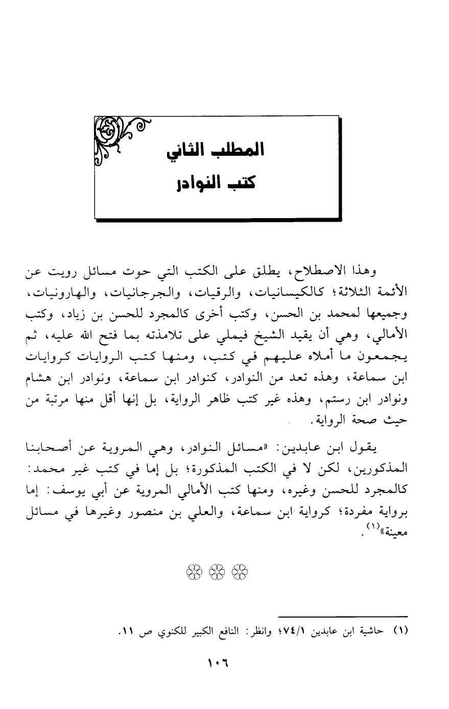 يقول ابن عابدين: «مسائل النوادر، وهي المروية عن أصحابنا المذكورين، لكن لا في الكتب المذكورة؛ بل إما في كتب غير محمد: