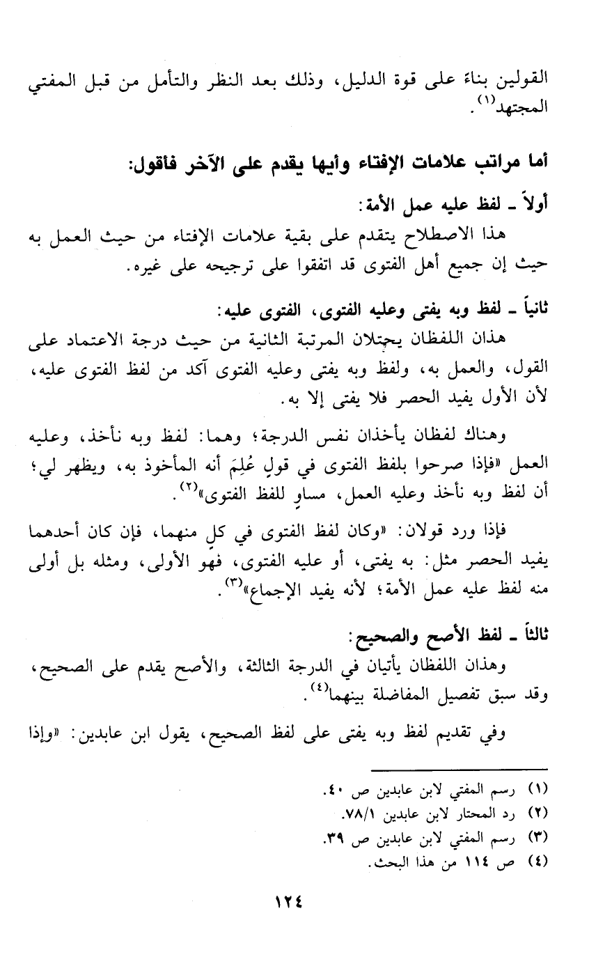 أما مراتب علامات الإفتاء وأيها يقدم على الآخر فأقول:
