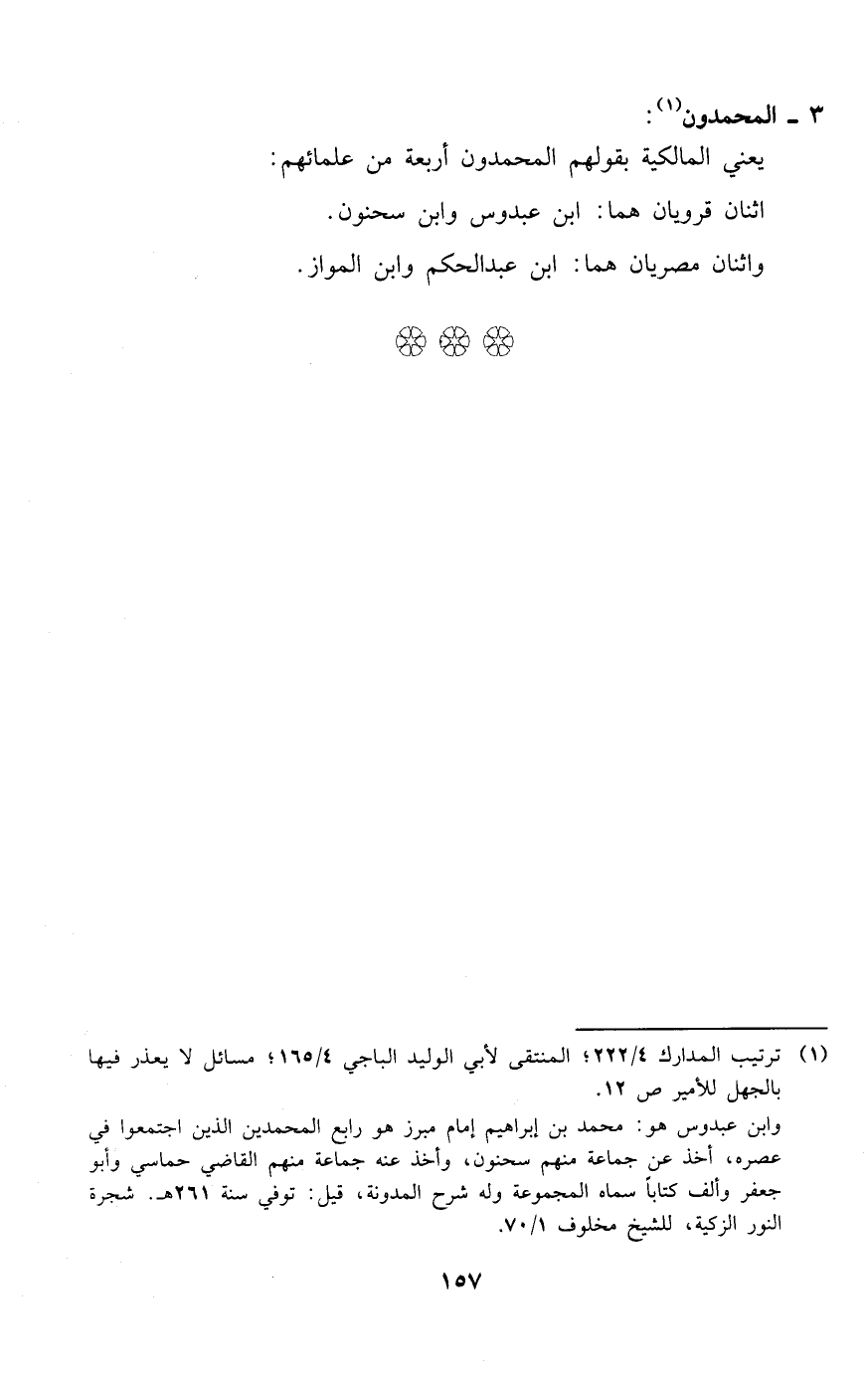 (¬1) ترتيب المدارك 4/ 222؛ المنتقى لأبي الوليد الباجي 4/ 165؛ مسائل لا يعذر فيها بالجهل للأمير ص 12. وابن عبدوس هو: محمد بن إبراهيم إمام مبرز هو رابع المحمدين الذين اجتمعوا في عصره، أخذ عن جماعة منهم سحنون، وأخذ عنه جماعة منهم القاضي حماسي وأبو جعفر وألف كتابا سماه المجموعة وله شرح المدونة، قيل: توفي سنة 261 هـ. شجرة النور الزكية، للشيخ مخلوف 1/ 70.