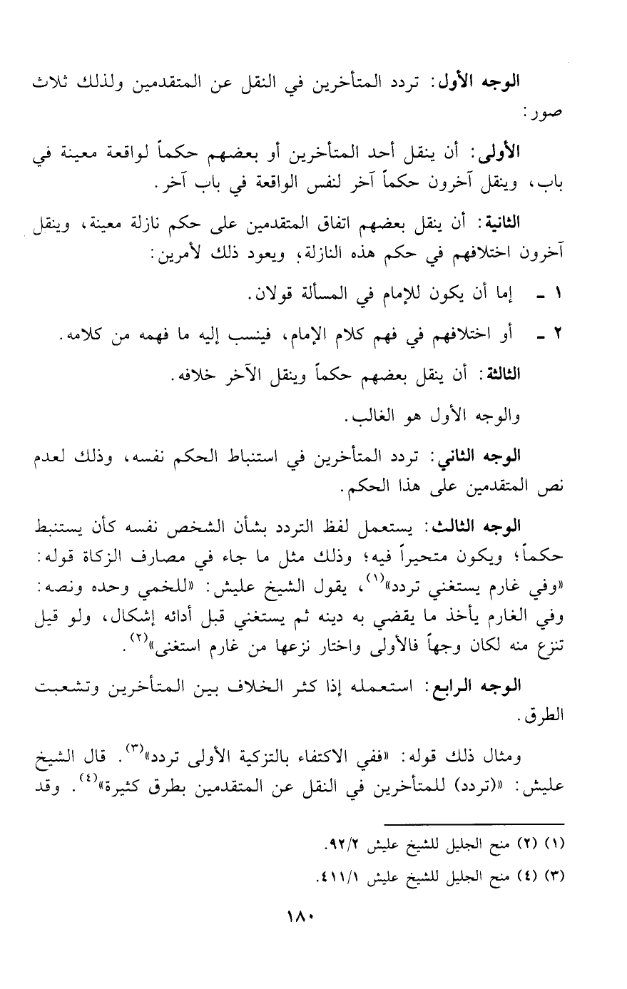 الوجه الأول: تردد المتأخرين في النقل عن المتقدمين ولذلك ثلاث صور:
