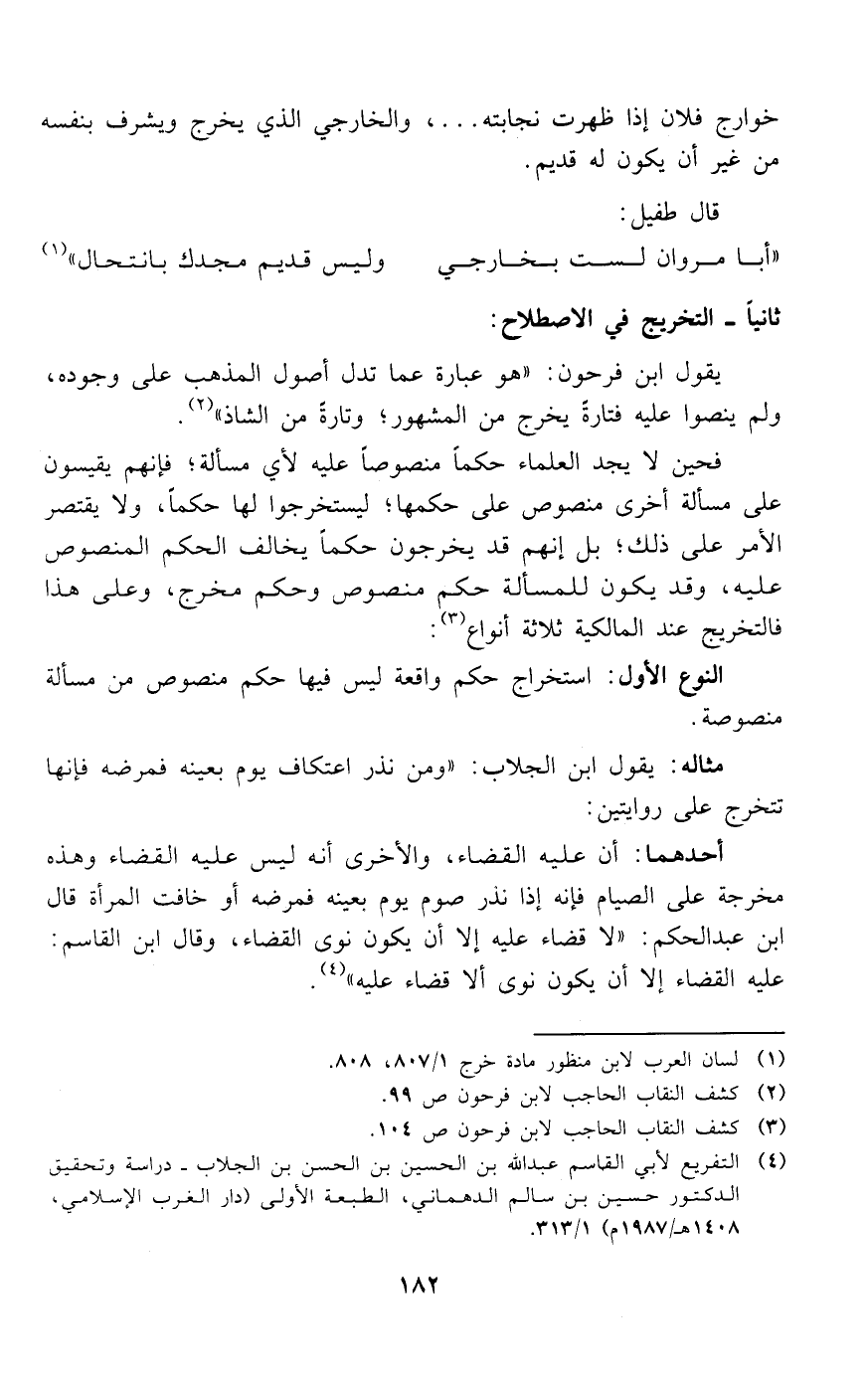 (¬4) التفريع لأبي القاسم عبد الله بن الحسين بن الحسن بن الجلاب-دراسة وتحقيق الدكتور حسين بن سالم الدهماني، الطبعة الأولى (دار الغرب الإسلامي، 1408 هـ/1987 م) 1/ 313.