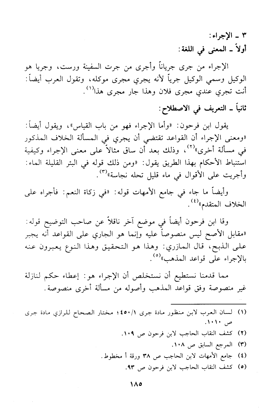 يقول ابن فرحون: «وأما الإجراء فهو من باب القياس»، ويقول أيضا: