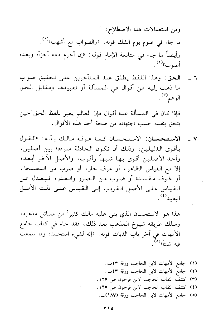 هذا هو الاستحسان الذي بنى عليه مالك كثيرا من مسائل مذهبه، وسلك طريقه شيوخ المذهب بعد ذلك، فقد جاء في كتاب جامع الأمهات في آخر باب الديات قوله: «إنه لشيء استحسناه وما سمعت فيه شيئا» (¬5).