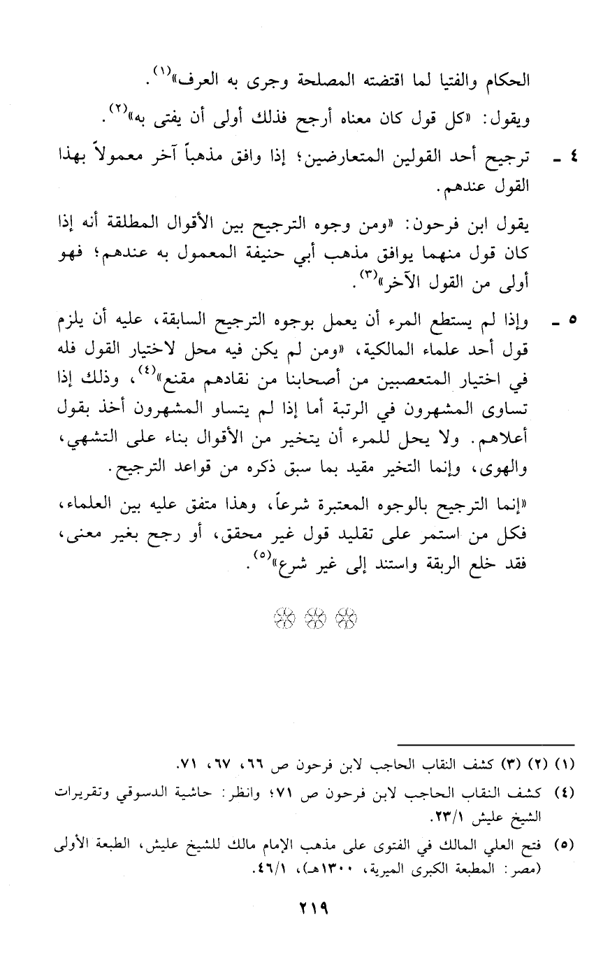 (¬4) كشف النقاب الحاجب لابن فرحون ص 71؛ وانظر: حاشية الدسوقي وتقريرات الشيخ عليش 1/ 23.