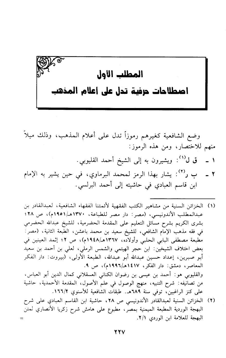 المطلب الأول اصطلاحات حرفية تدل على أعلام المذهب وضع الشافعية كغيرهم رموزا تدل على أعلام المذهب، وذلك ميلا منهم للاختصار، ومن هذه الرموز: