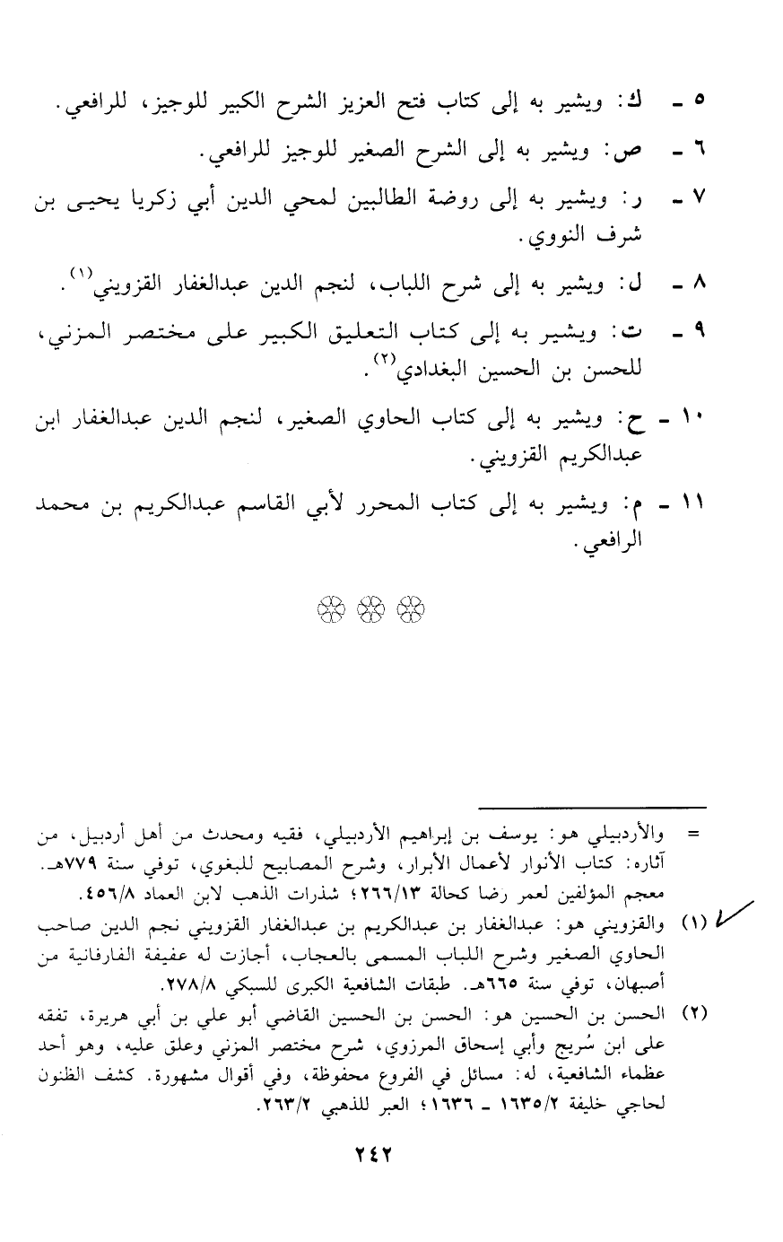 10 - ح: ويشير به إلى كتاب الحاوي الصغير، لنجم الدين عبد الغفار ابن عبد الكريم القزويني.