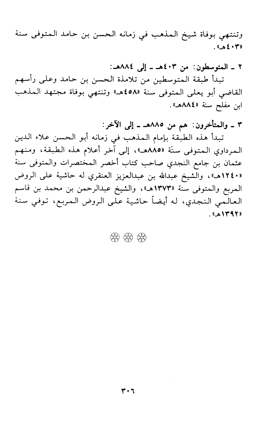 وتنتهي بوفاة شيخ المذهب في زمانه الحسن بن حامد المتوفى سنة «403 هـ».