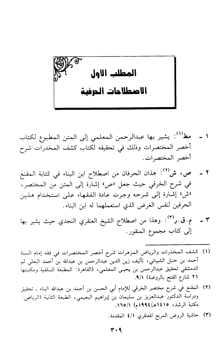 1 - مط (¬1): يشير بها عبد الرحمن المعلمي إلى المتن المطبوع لكتاب أخصر المختصرات وذلك في تحقيقه لكتاب كشف المخدرات شرح أخصر المختصرات.