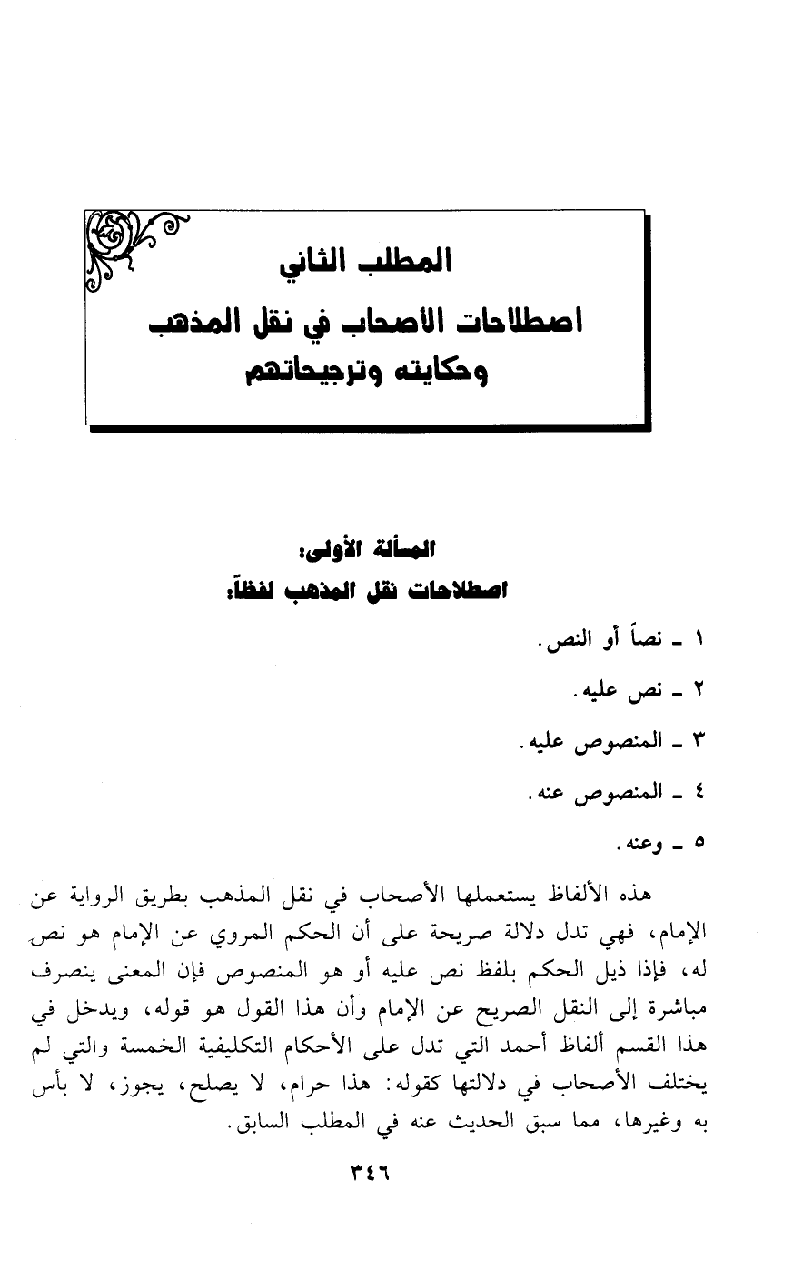 المطلب الثاني اصطلاحات الأصحاب في نقل المذهب وحكايته وترجيحاتهم