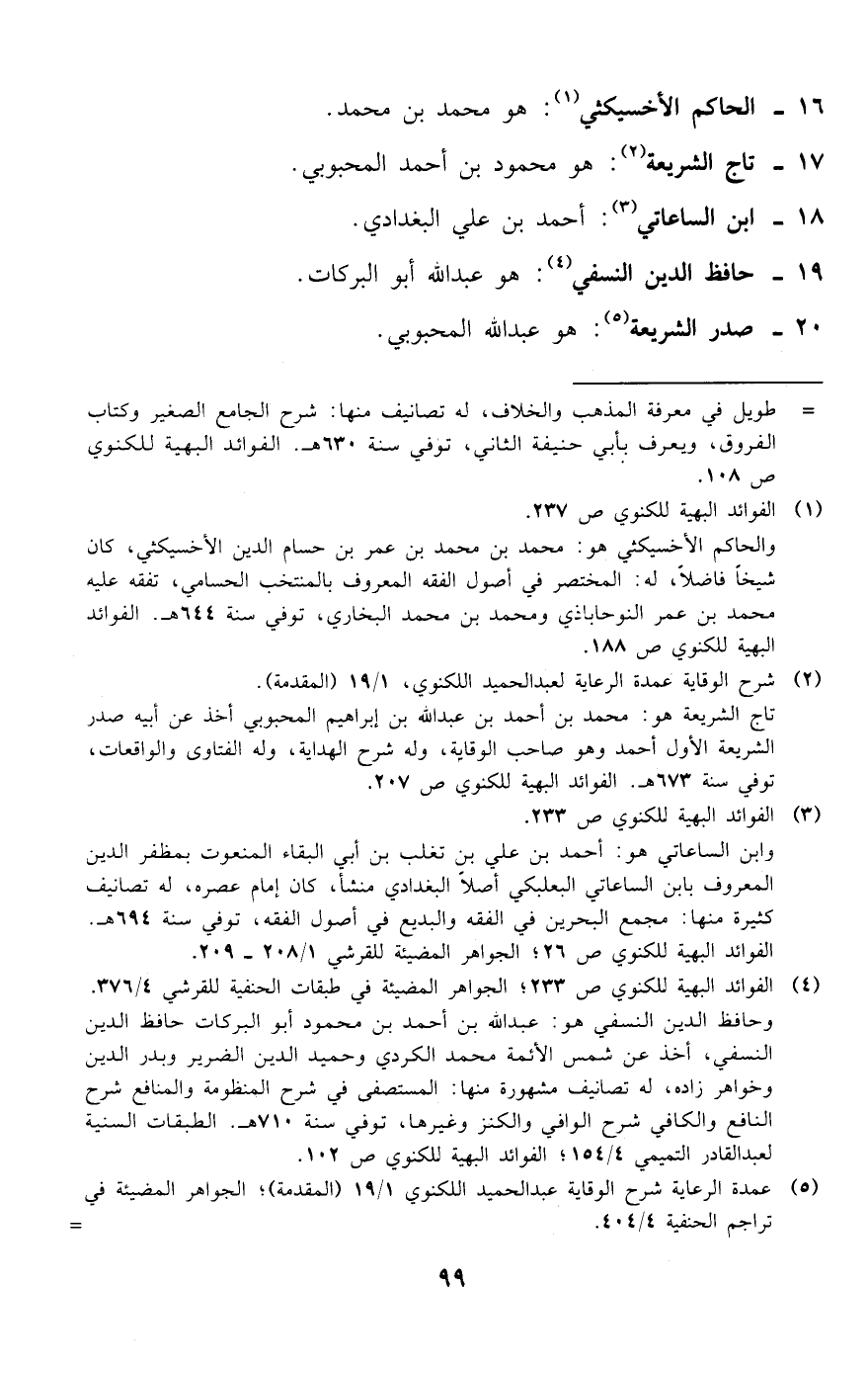 (¬3) الفوائد البهية للكنوي ص 233. وابن الساعاتي هو: أحمد بن علي بن تغلب بن أبي البقاء المنعوت بمظفر الدين المعروف بابن الساعاتي البعلبكي أصلا البغدادي منشأ، كان إمام عصره، له تصانيف كثيرة منها: مجمع البحرين في الفقه والبديع في أصول الفقه، توفي سنة 694 هـ. الفوائد البهية للكنوي ص 26؛ الجواهر المضيئة للقرشي 1/ 208 - 209.
