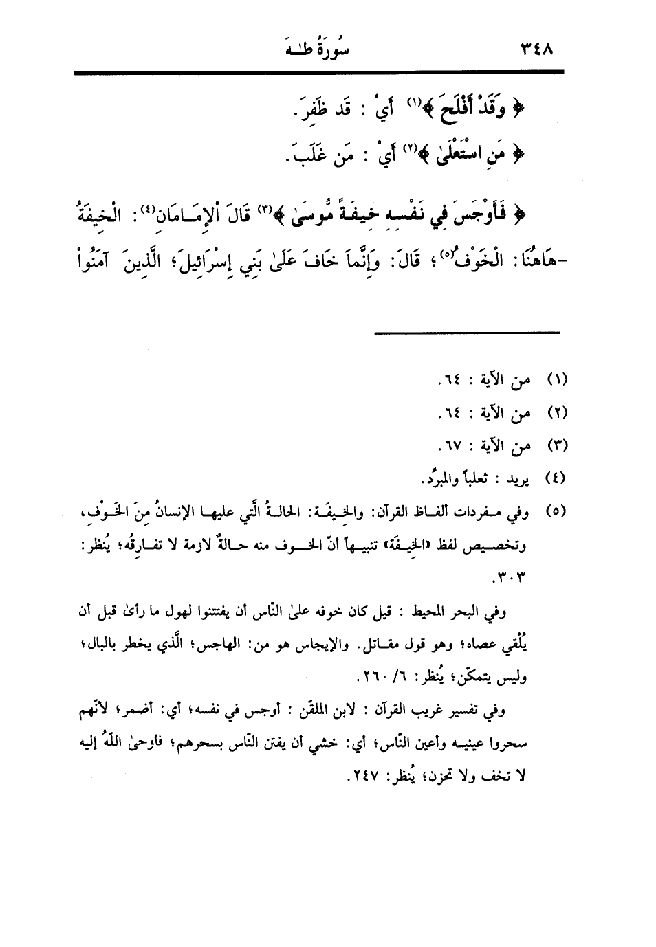 {وَقد أَفْلح} أَي: قد ظفر. {من استعلى} أَي: من غلب. {فأوجس فِي نَفسه خيفة مُوسَى} قَالَ الإمامان: الخيفة - هَاهُنَا: الْخَوْف، قَالَ: وَإِنَّمَا خَافَ على بني إِسْرَائِيل، الَّذين آمنُوا