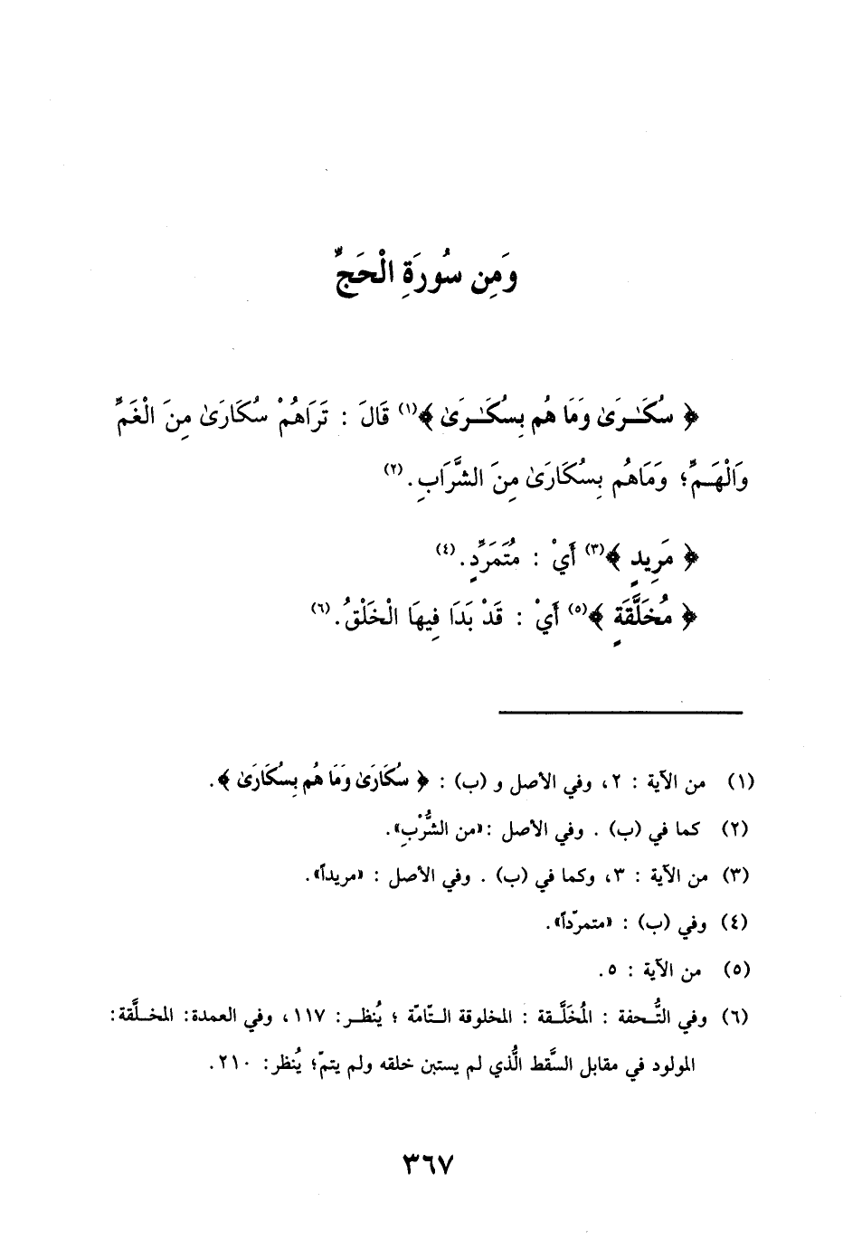 {سكارى وَمَا هم بسكارى} قَالَ: تراهم سكارى من الْغم والهم، وَمَا هم بسكارى من الشَّرَاب. {مُرِيد} أَي: متمرد. {مخلقة} أَي: قد بدا فِيهَا الْخلق.