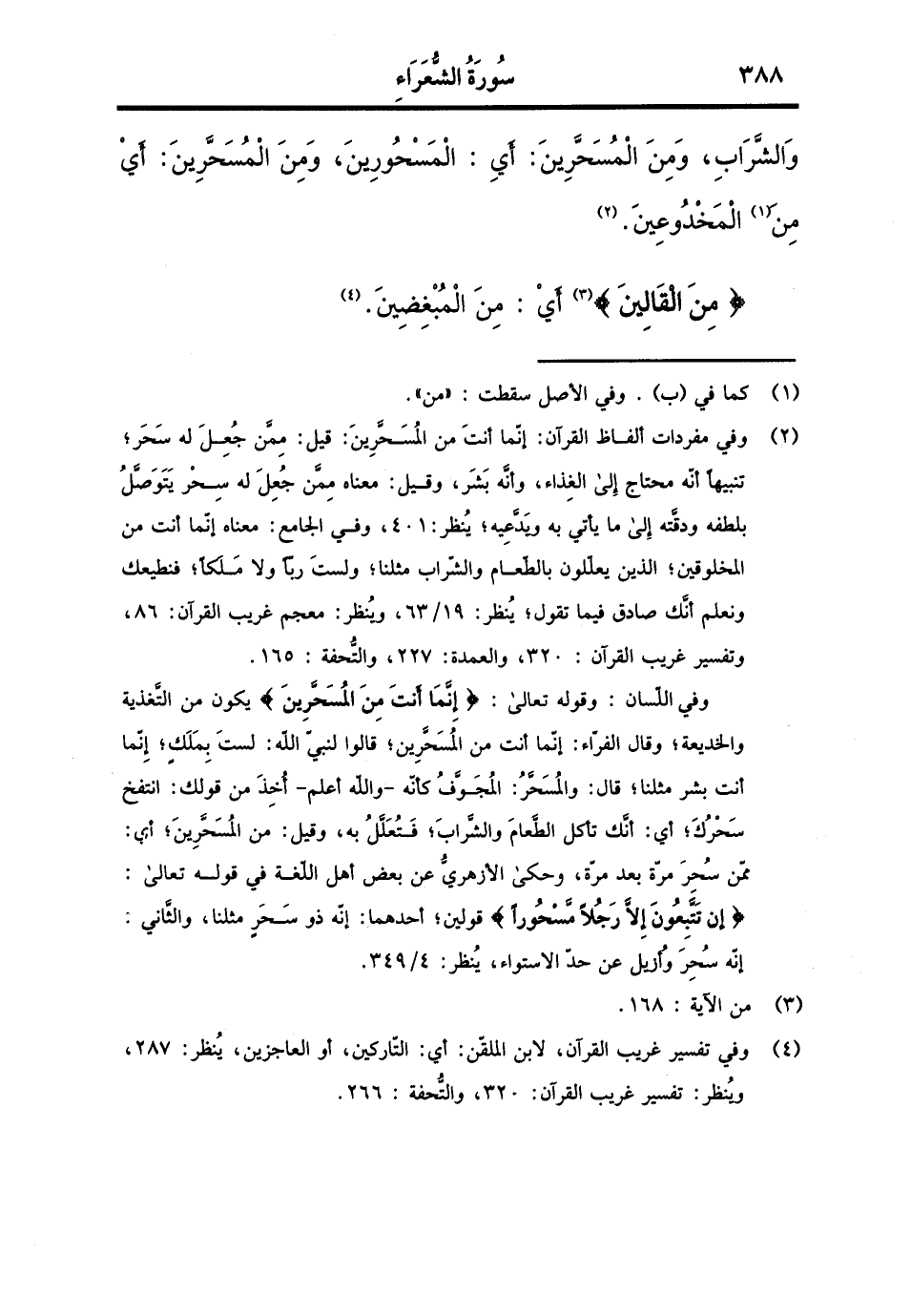 وَالشرَاب، وَمن المسحرين: أَي: المسحورين، وَمن المسحرين: أَي من المخدوعين. {من القالين} أَي: من المبغضين.