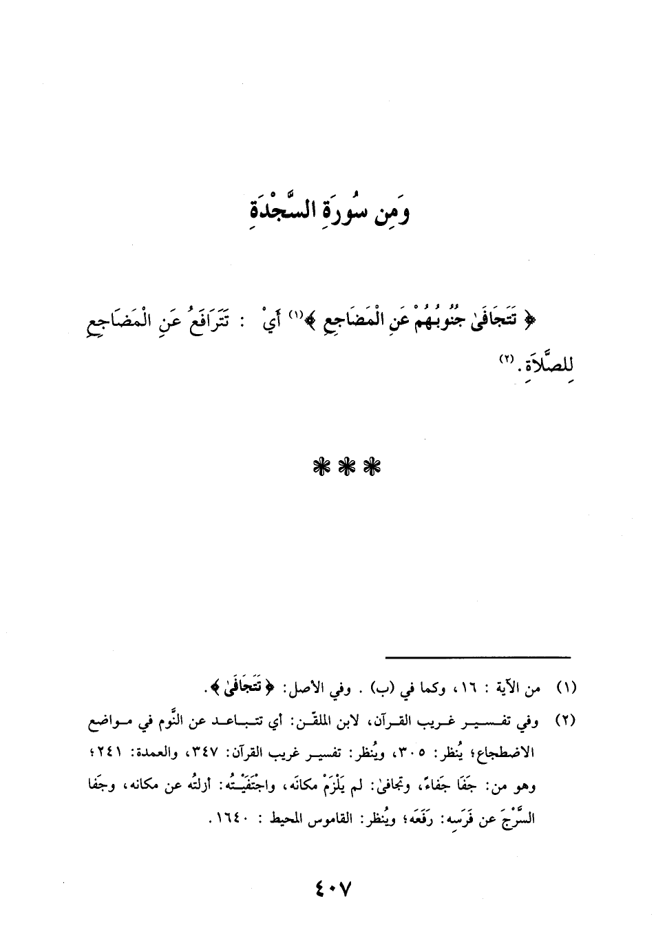 {تَتَجَافَى جنُوبهم عَن الْمضَاجِع} أَي: تترافع عَن الْمضَاجِع للصَّلَاة.