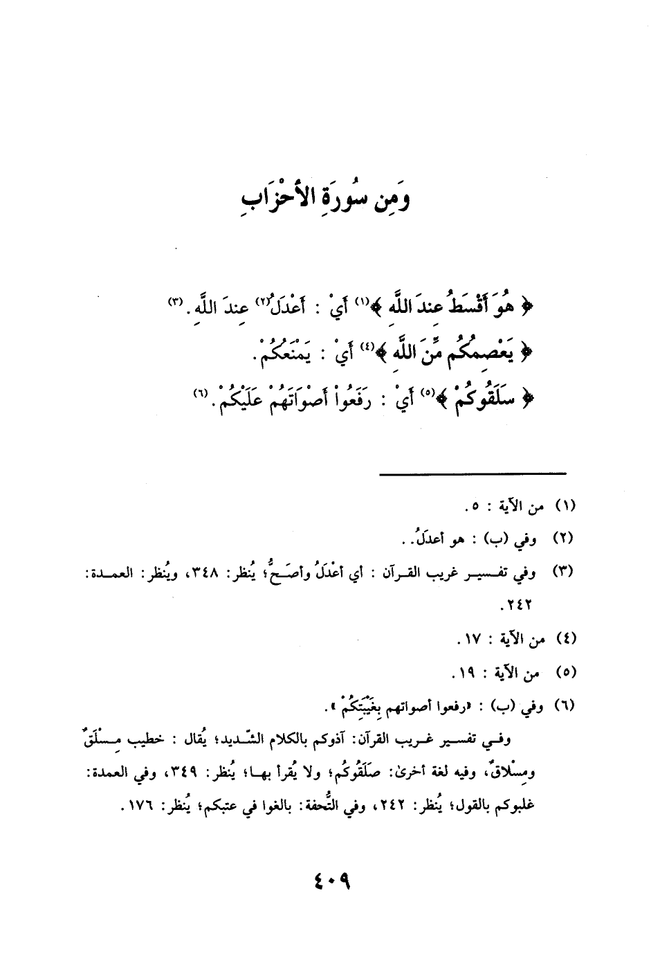 {هُوَ أقسط عِنْد الله} أَي: أعدل عِنْد الله. {يعصمكم من الله} أَي: يمنعكم. {سلقوكم} أَي: رفعوا أَصْوَاتهم عَلَيْكُم.