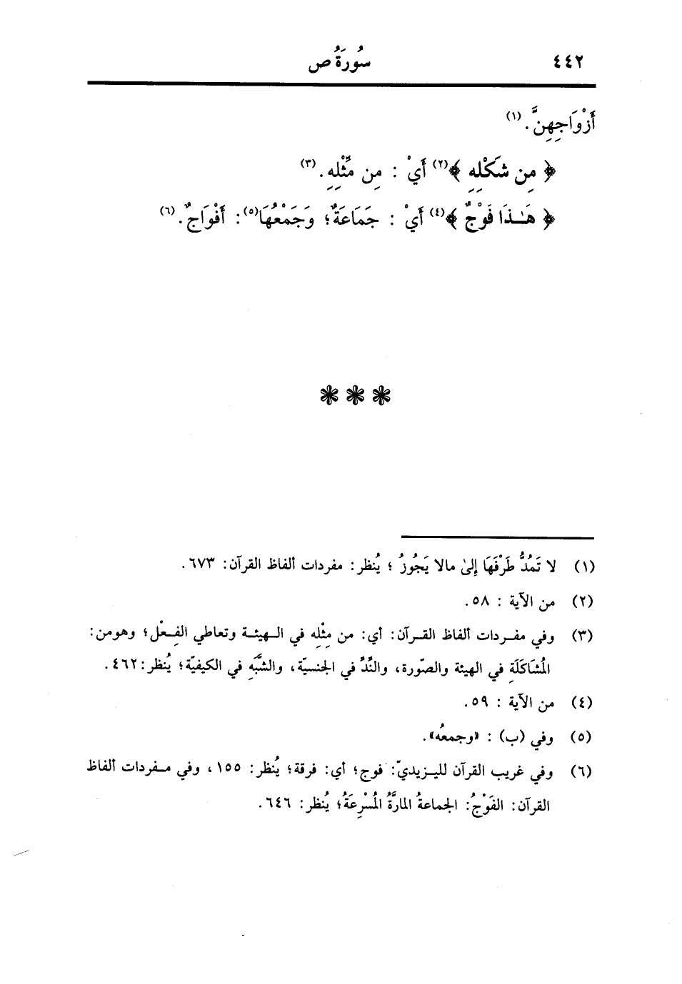 أَزوَاجهنَّ. {من شكله} أَي: من مثله. {هَذَا فَوْج} أَي: جمَاعَة، وَجَمعهَا: أَفْوَاج.