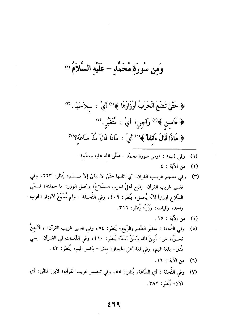 وَمن سُورَة مُحَمَّد - عَلَيْهِ السَّلَام